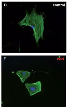 Звёздчатые клетки поджелудочной: в нижнем окне — под воздействием каннабиноидного агониста WIN. Michalski et al., 2008.[3]
