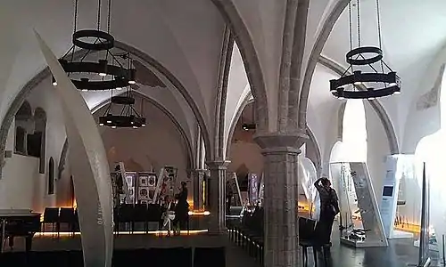 Средневековое внутреннее убранство здания не сохранилось. Из более позднего сохранились только два люнета, созданные в 1869 году и расположенные в правой части малого зала. На одном, работы Томаса Альберта Шпренгеля, изображена встреча первого лютеранского проповедника в Ревеле, на другом, работы Леопольда фон Пецольда — въезд в город «майского графа»[13].