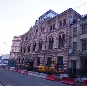 В 1833 году в двухэтажном здании поместилась духовная консистория со своим архивом, содержавшим метрические книги из всех московских церквей. В 1890-х годах постройки были снесены и 31 июля 1895 года состоялась закладка нового здания. Проект здания в русском стиле был выполнен архитектором В. Г. Сретенским. Рядом архитектором П. П. Виноградовым был пристроен доходный дом, меблированные комнаты которого сдавались в аренду; на первом этаже размещались контора «Мазуринской биржевой артели» и магазин Ю. С. Нечаева-Мальцова.