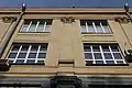 Входы в операционные залы находятся в угловых пластично округлённых частях здания. Дверные проёмы подчёркивают обрамления в виде камней с полуциркульным очертанием. По бокам от входов симметрично расположены узкие оконные проёмы с обрамлением, идентичным дверным. Перед каждым дверным входом расположено полукруглое крыльцо