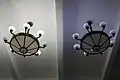 Внутри здания на первом этаже перекрытие опирается на круглые колонны со стилизованными ионическими капителями, на втором этаже перекрытие подпирают колонны с коринфскими капителями[1].