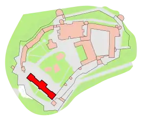 Здание было построено в 1856 году по проекту краковского архитектора Феликса Ксенжарского для госпиталя австрийской армии. После Второй мировой войны до 1991 года в здании находился представительский орган кабинета министров Польши. Потом оно было передано для представительской канцелярии президента Польши. В настоящее время в нём располагается Выставочный конференц-зал и жилые помещения для работников Вавеля.