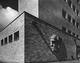 Поставленное на возвышенности пятиэтажное здание в стиле функционализма с умело найденными пропорциями, замыкающее перспективу обширной городской площади, стало важной деталью в панораме морского фасада Выборга. Специалистами отмечалось, что в отделке главного фасада, в частности, наружной стены вестибюля, заметно тяготение к символике современной германской архитектуры, что резко выделяло здание из тогдашней городской застройки.