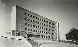 В 1936 году городскими властями Выборга было принято решение о строительстве нового здания, предназначенного для Выборгской навигационной школы (морского училища), основанной в 1868 году, и Выборгского торгового (коммерческого) училища, основанного в 1890 году. Спроектированное архитектором Рагнаром Юпюя, занимавшим должность выборгского городского архитектора, здание заняло участок в непосредственной близости от Выборгского торгового порта, для работы в котором и должны были готовиться специалисты образовательных учреждений. Строительные работы начались в 1937 году и в 1938 году были завершены. Однако финские учебные заведения недолго занимали новое здание по причине Советско-финляндской войны (1939—1940). Когда в результате войны в 1940 году советские войска вошли в Выборг, торговое училище было эвакуировано в Тампере, а морское училище — в Котку. Здание пострадало во время войны, но вскоре было отремонтировано. В ходе Великой Отечественной войны с 1941 по 1944 год его занимала финская военная администрация города, что предопределило его передачу советскому военному ведомству: с 1944 года здание занимают подразделения пограничной службы (администрация 102-го пограничного отряда, бригады пограничных сторожевых кораблей и отдельного контрольно-пропускного пункта «Выборг», с 2007 года объединённых в Службу Пограничного управления ФСБ России по Санкт-Петербургу и Ленинградской области в городе Выборге).