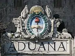 Здание таможни было построено во французском неоклассическом стиле во время правления президента Хосе Фигероа Алькорты (1906—1910) в период бурного роста аргентинской внешней торговли и экономики и ростом ВВП более 8 % в год. В нём размещается Главное таможенное управление Аргентины (DGA)[1]. Новое административное здание для таможни было спроектировано местными архитекторами Эдуардо Ланусу и Пабло Хари в 1909 году. Здание примечательно не только своим стометровым фасадом и двумя башнями, но и использованием облицовки из каррарского мрамора, а также его многочисленными аллегорическими деталями, такими как орнаментальные головы быка и мраморные кариатиды вдоль карниза, некоторые из которых украшены замысловатыми коваными акантами и лавровыми венками[2].