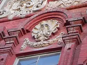 Оформление фасадов решено в стиле эклектика с элементами модерна — лепные элементы (розетки, маски, гирлянды, отдельные тяги, подвески)[5], что является единственным примером подобного решения в городе[4].