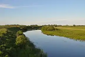Типичный пейзаж для данного района показан на фото: река Чулым, степь, невысокие колки на заднем плане. Для района характерны небольшие перепады высот (это объясняет спокойное течение реки и низкие берега).