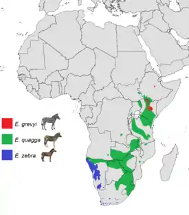 Сегодняшний ареал наиболее часто встречающейся Бурчелловой (саванной) зебры охватывает юг Судана и Эфиопии, саванны Восточной Африки вплоть до юга континента. Зебра Греви (пустынная) встречается в сухих саваннах Восточной Африки, в Кении, Эфиопии и Сомали. Горная зебра является наименее распространённым видом, её ареал ограничивается высокогорными плато Намибии и ЮАР, где она встречается на высоте до 2000 м.