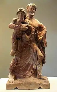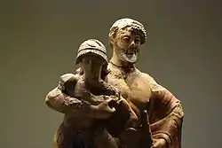 Эта группа, вероятно, входила в число акротерия одной из сокровищниц Олимпии; более ранние теории предполагали, что она была современница Храма Зевса в Олимпии. Размер фигур несколько необычен — он меньше натуральной величины, но значительно превышает обычный размер для терракотовых скульптур (110 см[1]). Произведение датируется приблизительно 480—470 годами до н. э., переходным периодом между архаическим и классическим периодами, и приписывается коринфской мастерской.