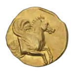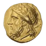 Изображения Зевса встречаются на золотых статерах Мизии[2], Бактрии[4] и Киренаики[5]. Образ Юпитера чеканился на ауреусах Нерона[3], Траяна[6], Адриана[7], Александра Севера[8], Гордиана III[9], Галлиена[10], Лициния II Младшего[11].