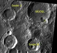 ![]() Снимок зонда Lunar Reconnaissance Orbiter. Кратер Зейдель в центре снимка. | |