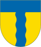 В золоте зелёная, обременённая летящей вправо, с воздетыми и распростёртыми крыльями, серебряной чайкой и трижды проросшая еловой лапой глава и лазоревая выщербленная оконечность, из-за которой возникает серебряный безант[41].