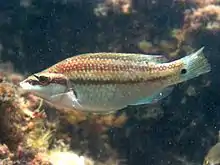 ![]() Самец и две самки зеленушки, Средиземное море у южного побережья Франции | ||||||||