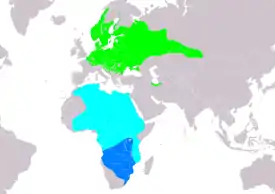 ![]() Только гнездится Маршруты миграции Районы миграции |