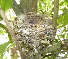 Для жизни пересмешки нужны не только кроны деревьев, но и кустарник под ними или по опушкам. Своё искусное гнездышко она вьёт в лесном подседе или на небольших деревцах — на черемухе, рябине, сирени. Обычно оно помещается: в развилке двух ветвей, близко отходящих от главного ствола, и сделано из очень разнообразного материала. Наружные стенки бывают плотно сплетены из сухих стебельков, листьев и корешков, и все это перепутано паутиной гусениц, растительным пухом и «облицовано» тонкими курчавыми плёнками берёзовой кожицы (бересты). Такая «облицовка», часто под тон окружающих ветвей, делает гнездо очень мало заметным. Внутренняя выстилка бывает из волоса и перьев. Вся постройка очень плотна, в форме глубокой чашечки, стенки которой прикреплены к опорным ветвям. Полная кладка содержит 4-5 яиц, бледно-розоватых, с отчетливыми черновато-бурыми пятнышками (длина около 18 миллиметров). В средней полосе (в Московской области) в конце июня уже попадаются слетки. Так же, как родители, они мало заметны в листве кустарника, где держатся, но выдают своё присутствие низким и хриплым криком («чэээ-чэээ»).