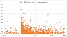 Землетрясение в Лос-Анджелесе, также известное как «Нортриджское землетрясение», «Землетрясение в Нортридже», англ. «Northridge earthquake» — разрушительное землетрясение[k 1] магнитудой 6,7 (Mw)[1], произошедшее 17 января 1994 года в 4:30:55 (PST, 12:30:55 UTC) в долине Сан-Фернандо, одном из регионов округа Лос-Анджелес (США). В этот день в США отмечался День Мартина Лютера Кинга и этот день был выходным. Эпицентр землетрясения располагался в 1 км к юго-юго-востоку от района Ресида[6].