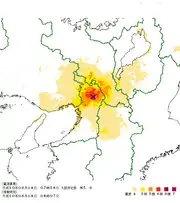Карта интенсивности землетрясения по шкале японского метеорологического агентства.