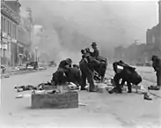 Военные предоставили динамит для подрыва зданий с целью предотвращения распространения огня. Они также обеспечивали пострадавших пищей и кровом: ими было построено 5610 временных домов. Эти дома сдавались за $2 в месяц, максимальное число живших в них людей составило 16 448, в 1907 году почти все они были покинуты. 1 июля 1906 года власти города нашли возможным отказаться от дальнейшей помощи армии.