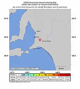 Землетрясение ощущалось в населённых пунктах: Аделаида, Краферс, Бриджуотер, Голер, Маунт-Баркер, Марри-Бридж, Виктор-Харбор[5].