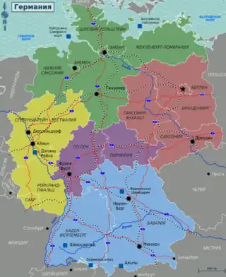 | Саар Saarland | 3 | 2 571,11 | 990 509 | 385 | Саарбрюккен Saarbrücken | |