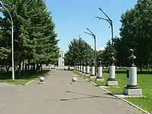 В 2018 году вдоль аллеи, ведущей к мемориалу, были установлены 11 бронзовых бюстов кавалеров ордена «Победа»[7].