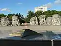 Позади каменных глыб находятся гранитные плиты с именами комсомольчан, погибших на полях сражений Великой Отечественной войны. Всего на плиты нанесено более пяти тысяч имён.[1][5]