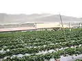 Для защиты от птиц над плантацией земляники садовой натянута сетка (Тайвань)