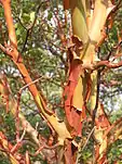 Вечнозелёные мелкие деревья или кустарники с гладкой кораллово-красной или трещиноватой грубой бурой корой.