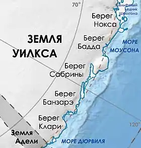 Прибрежные участки Земли Уилкса — берега Нокса, Бадда, Сабрины, БАНЗАРЭ и Клари.