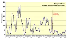 Боэр, считающийся основателем венской школы акушерства, впал в немилость у власти после смерти Иосифа II. После серии обвинений и интриг его отправили в отставку за «несоблюдение субординации», а на пост профессора и главы акушерского отделения в начале 1823 года в Центральной Венской больнице был назначен Йохан Клейн. Ранее Боэр отзывался о Клейне как о наименее способном из всех претендентов на пост, и подобное назначение было ещё одним шагом в политической борьбе его противников[29]. С 1823 года студенты-медики и врачи получили доступ к анатомическому отделению и стали участвовать во вскрытиях, в том числе тел рожениц, умерших от родильной горячки. Они также проводили вагинальный осмотр умерших рожениц, после чего переходили в отделение родовспоможения для осмотра рожающих. Сравнительный анализ смертности от родильной горячки относительно показателей Дублинской центральной больницы продемонстрирован на графике 3: сразу после назначения Клейна последовал резкий всплеск[30]. С января 1833 года из-за большой загрузки решено было разделить акушерское отделение на две клиники[31], а в 1840-м Клейн разделил всех студентов на две группы — в 1-ю клинику набирали мужчин, учившихся на врачей, а во 2-ю — женщин, которые обучались только акушерству[26]. В тот период в больнице принимали от шести до восьми тысяч родов в год[32]. Прямым руководителем первой клиники являлся сам Клейн, а главой второй был назначен приглашённый из Зальцбурга профессор Франц Бартш[33].