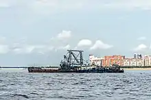 Земснаряд с грунтоотвозными шаландами в Невской губе, Санкт-Петербург