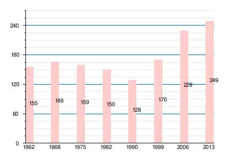| 1962 | 1968 | 1975 | 1982 | 1990 | 1999 | 2006 | 2008 | 2011 | 2012 | 2013 |