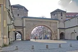 В 1808 году центральная башня была снесена. Арнольд Ценетти провел в 1860 реставрацию двух сохранившихся фланговых башен и внутренних стен. В 1906 году эти ворота по техническим причинам были заменены большой центральной аркой.