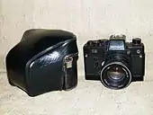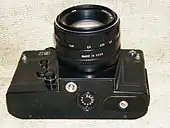 - TTL-экспонометр (заобъективная экспонометрия) с сернисто-кадмиевым (CdS) фоторезистором. Стрелочный индикатор экспонометра виден в поле зрения видоискателя. Полуавтоматическая установка экспозиции на закрытой до рабочего значения диафрагме. При установленной светочувствительности фотоплёнки и выдержке вращением кольца установки диафрагмы стрелочный индикатор должен быть установлен в нейтральное положение. Диапазон светочувствительности плёнки 16-500 ед. ГОСТ. При применении светофильтров автоматически вносятся поправки на их плотность. Визирование, фокусировка и установка экспозиции производится не отрывая взгляда от окуляра.