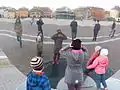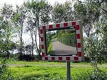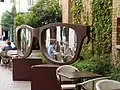 Большое выпуклое зеркало. Искажения на изображении увеличиваются с увеличением расстояния просмотра.