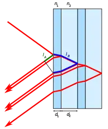 Диэлектрический зеркальный блок работает по принципу тонкоплёночной интерференции. Каждый слой имеет различный показатель преломления, что позволяет каждому интерфейсу создавать небольшое количество отражения. Когда толщина слоёв пропорциональна выбранной длине волны, множественные отражения конструктивно мешают. Стеки могут состоять из нескольких сотен отдельных слоёв.