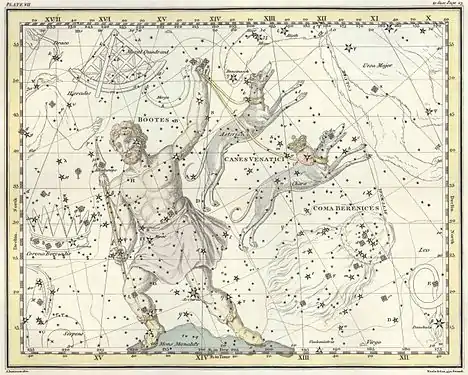 - Стенной Квадрант (отменённое созвездие, созданное Лаландом вероятно, в память об астрономическом инструменте Тихо Браге.[15]