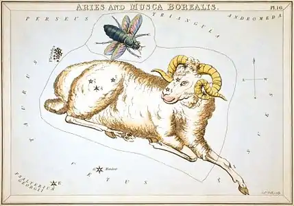 - Северная Муха (отменённое созвездие, представляет собой муху, не следует путать с современным южным созвездием Муха.)[20]