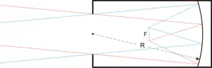 Сферические зеркала нашли применение также при проектировании фотографических и киносъёмочных телеобъективов. Благодаря зеркально-линзовой конструкции существенно уменьшается длина оправы, поэтому объективы с фокусным расстоянием 1000 мм и более значительно компактнее и легче обычных длиннофокусных объективов[4]. В отдельных случаях уменьшение количества линз позволяет снизить хроматические аберрации.