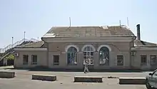 Вид на вокзал станции и переходной мост с Привокзальной площади.