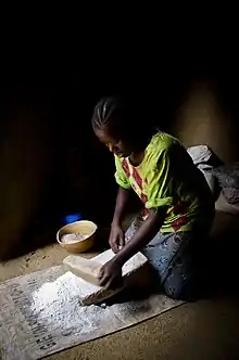 Вместо нижнего камня для размола зерна также могли использоваться выбитые углубления в природном скальном основании[5].