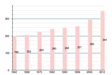 | 1962 | 1968 | 1975 | 1982 | 1990 | 1999 | 2006 | 2007 | 2008 | 2011 | 2012 |
