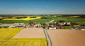 Соседние населённые пункты: на севере — административный центр коммуны Кроствиц, на востоке — деревня Лейно, на юго-востоке — деревня Часецы, на юго-западе — деревня Нойхоф коммуны Буркау и на западе — деревня Свинярня[2].