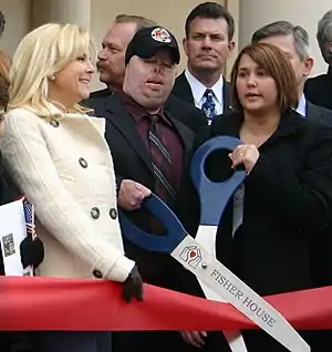![]() Тайлер Зигел вместе с Рене Клайн перерезают торжественную ленту | |