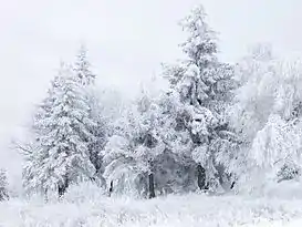 Изморозь — предвестник снега. Быстрая оттепель — будет мало и дождей летом. В начале зимы шёл сильный снег, в начале лета пойдет сильный дождь. Ночью иней — днем снега не выпадет. Зимой много инея — летом много росы. Снежный буран днем предвещает мороз ночью. Лед сильно трещит — будет мороз. Снежные хлопья крупные — будет оттепель. Лёд почернел, лес шумит — жди оттепель. Зима резвится не только в лесу, а у нас на носу[8].