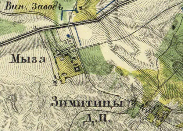 ЗИМИТИЦЫ — деревня владельческая при колодце, по Нарвскому шоссе по левую сторону, от Ямбурга в 36 верстах, число дворов — 12, число жителей: 42 м. п., 60 ж. п. (1862 год)[15]
