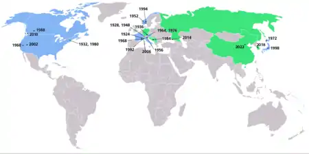 Сначала зимние Игры проходили в один и тот же год c летними, в первый год четырёхлетнего олимпийского периода, а начиная с 1994 года зимние Игры проводятся через 2 года после летних. В отличие от летних Олимпийских игр, несостоявшиеся Олимпийские зимние игры не нумеруются.