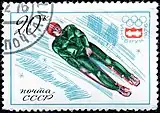 Почтовый блок СССР 1976 г. XII зимние Олимпийские игры. С надпечаткой.