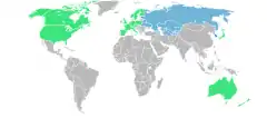 Страны, участвовавшие в играх. Зелёным показаны страны, уже участвовавшие, синим - принимающие участие первый раз (включая в качестве независимых стран), голубым - объединённая команда. Жёлтая точка - город Тинь