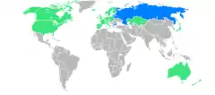 Страны, участвовавшие в играх. Зелёным показаны страны, уже участвовавшие, синим — принимающие участие первый раз. Жёлтая точка — город Лиллехаммер